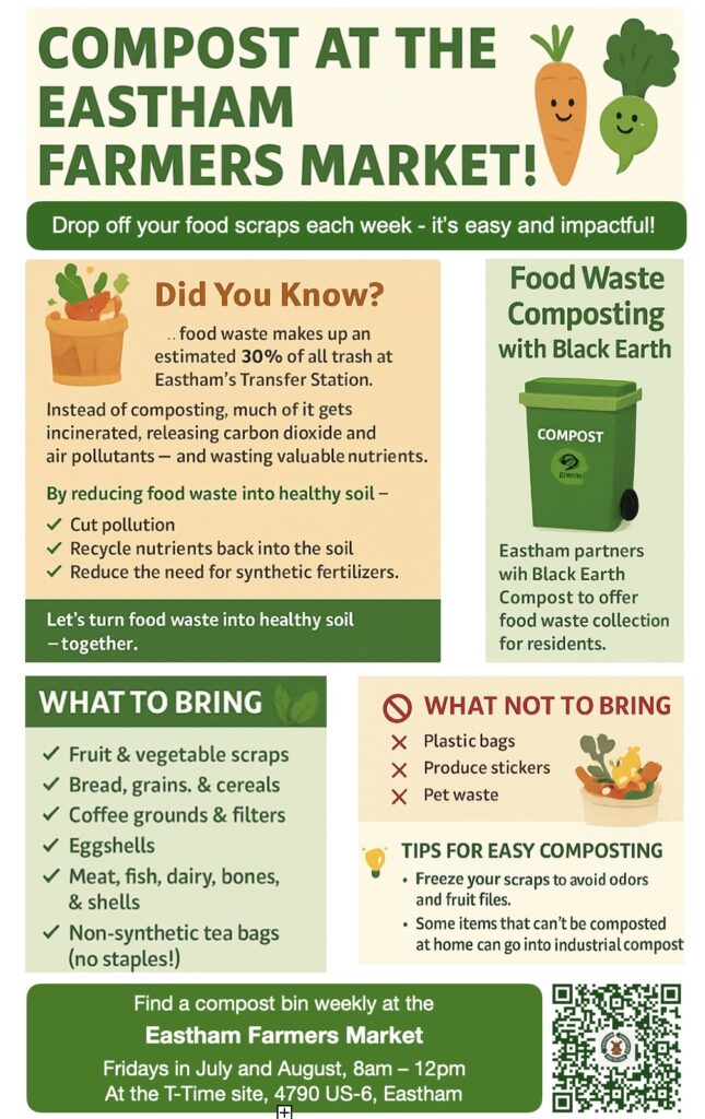 The Eastham traveling compost bin will be available at the Eastham Farmers Market all summer! Come by, and bring your compost!
